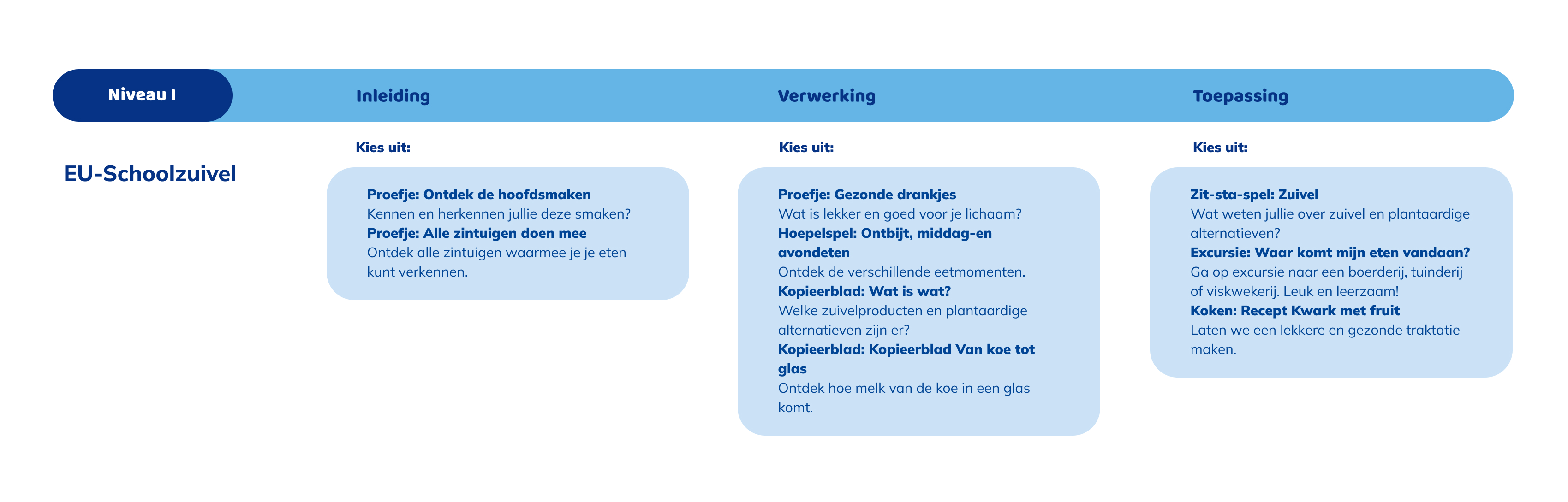 Wil je aan de slag met het geven van voedseleducatie in de klas? Begin met de EU-Schoolzuivel startlessen. Voor het speciaal onderwijs zijn er startlessen ontwikkeld die aansluiten bij de belevingswereld, het tempo én de mogelijkheden van deze leerlingen, samen met experts uit het speciaal onderwijs. Met praktische materialen, veel afwisseling en volop ruimte voor doen, ruiken, proeven en ontdekken. Tijdens EU-Schoolzuivel is het geven van een startles in iedere klas een vast onderdeel van het programma.