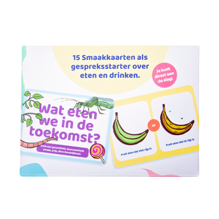 In het spel vind je 15 Smaakkaarten als gespreksstarter over eten en drinken. De Smaakkaarten bevatten vragen, stellingen, raadspelletjes en opdrachten.