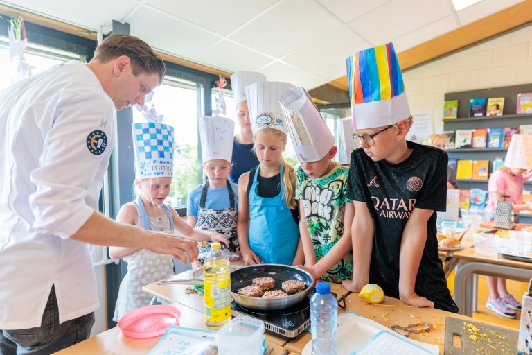 Tijdens het Kok in de Klas-event staat een echte (gast)kok voor de klas in een groep 6, 7 of 8 en geeft een 1.5 uur durende les.